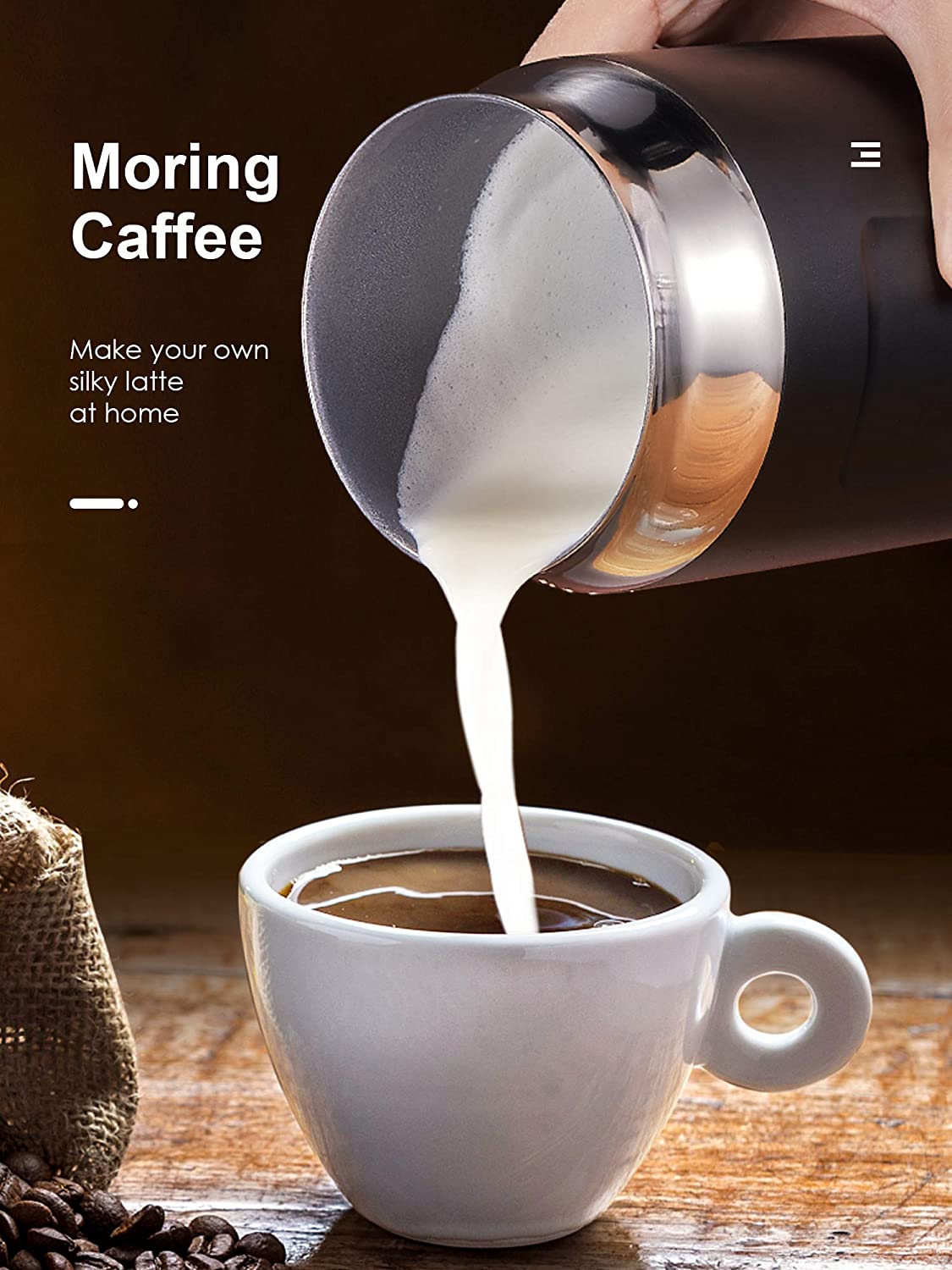 - 2023Newest Magnetic Rotor- electric milk frother has the newest magnetic milk frothing technology and rotor, which allows you to make a lot of thicker and smoother milk froth without leaking milk than handheld frother. If you want to enjoy exquisite coffee style in the morning, you definitely want to have an milk frother at home
