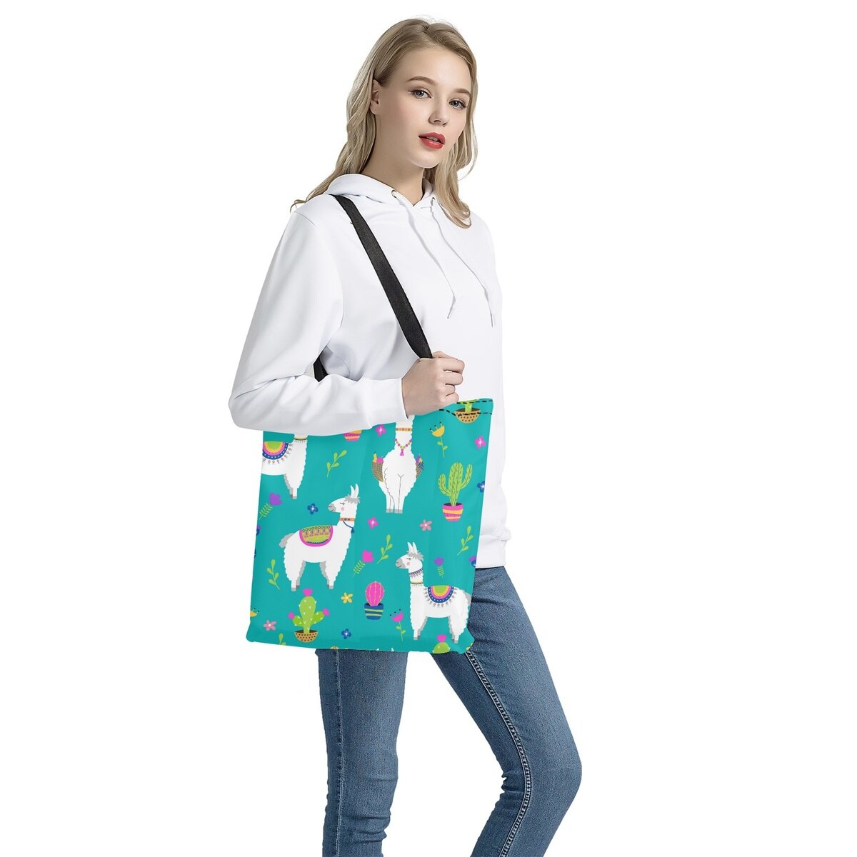 Coloranimal Cute Alpaca Cartoon Prints Children's Gift Ladies Travel Large Capacity Canvas Storage Bag Eco-Friendly Shopping Bag