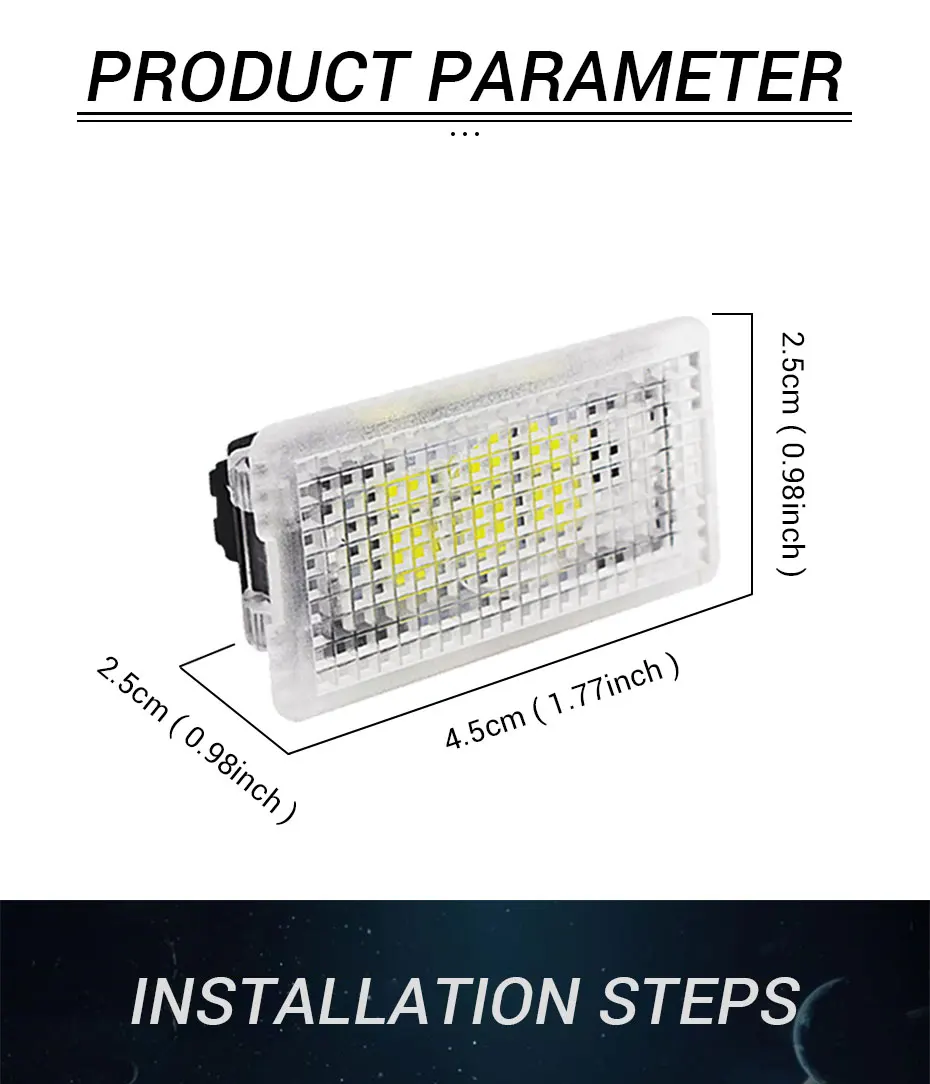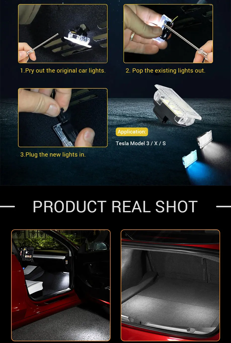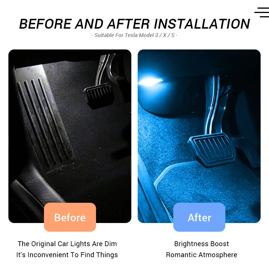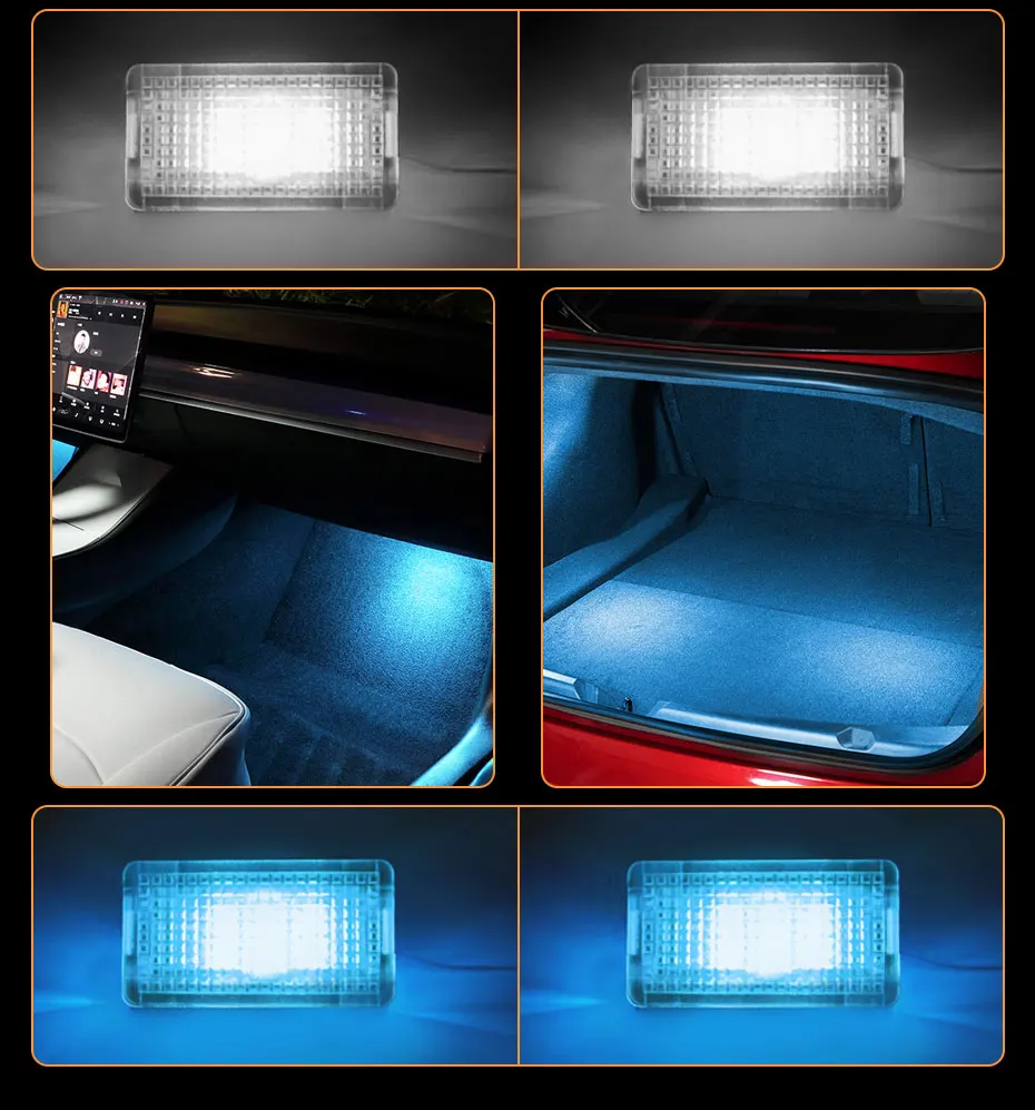 -Customized for Tesla Model 3, Tesla Model X and Tesla Model S (Trunk Light & Frunk Light & Puddle Light & Foot Well Lights & Glove box light). Direct replacement of the factory dim light.