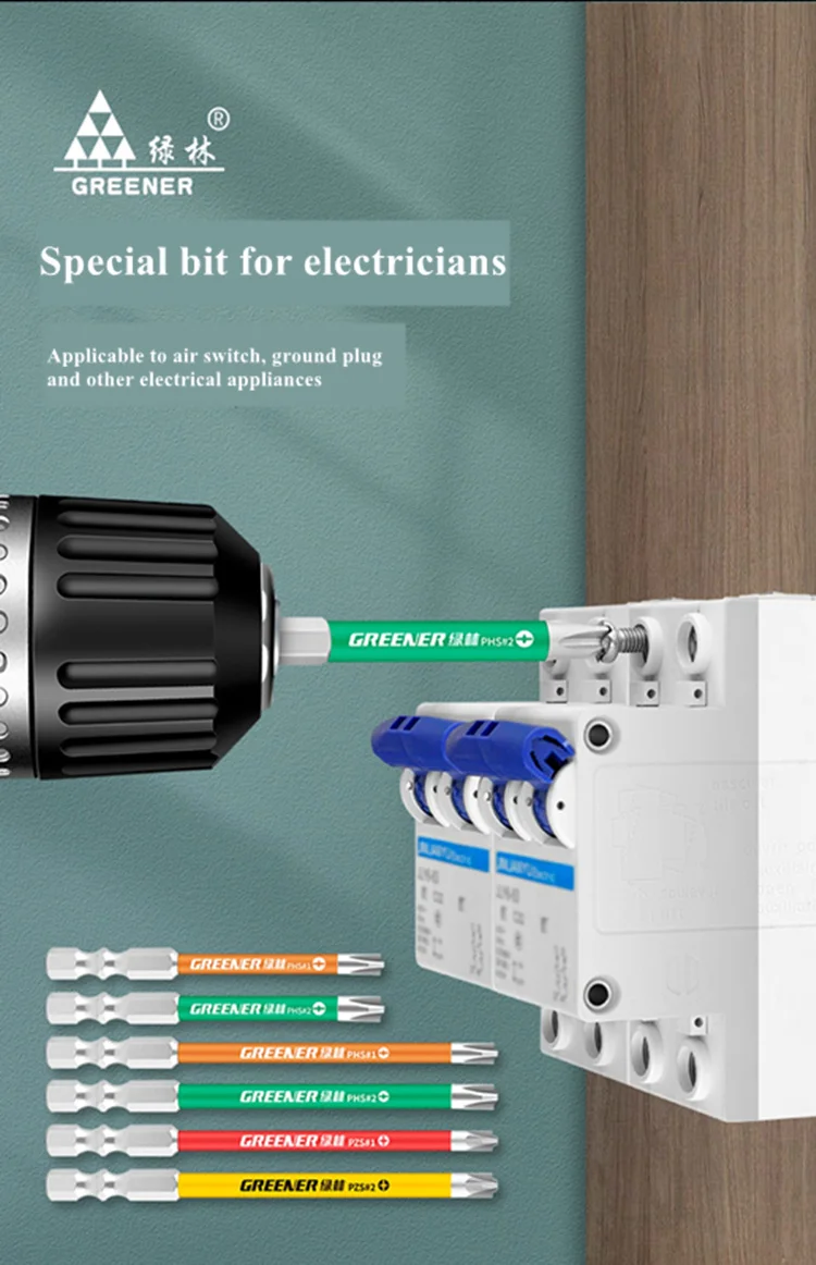 GREENERY Electrician Batch Head Rice Word Strong Magnetic Special Switch Socket Panel Non-Slip Removal Tool PZ1PZ2 S2 Steel