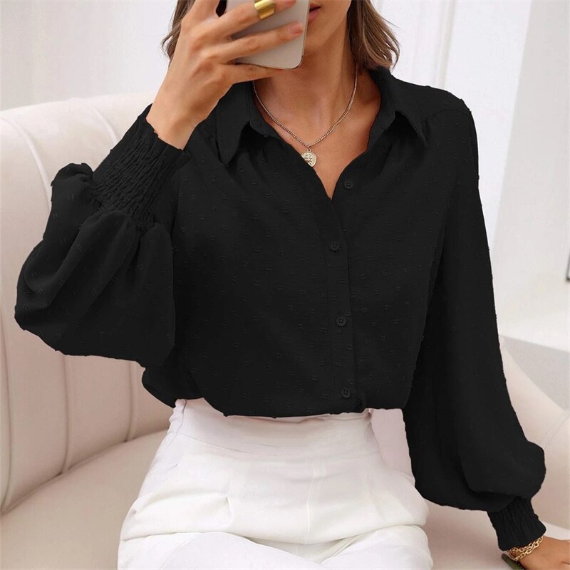 Elegant Lapel Lantern Sleeve Cardigan Shirt Female 2023 Spring Autumn Commuter Tops Women's Long Sleeves Button Splicing Blouse