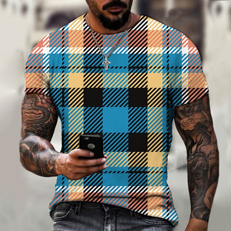 Hip Hop Summer Men's T-shirt Cool Plaid Striped Pattern Casual Oversized Fashion 3D Printing Style Harajuku O-neck Short Sleeve