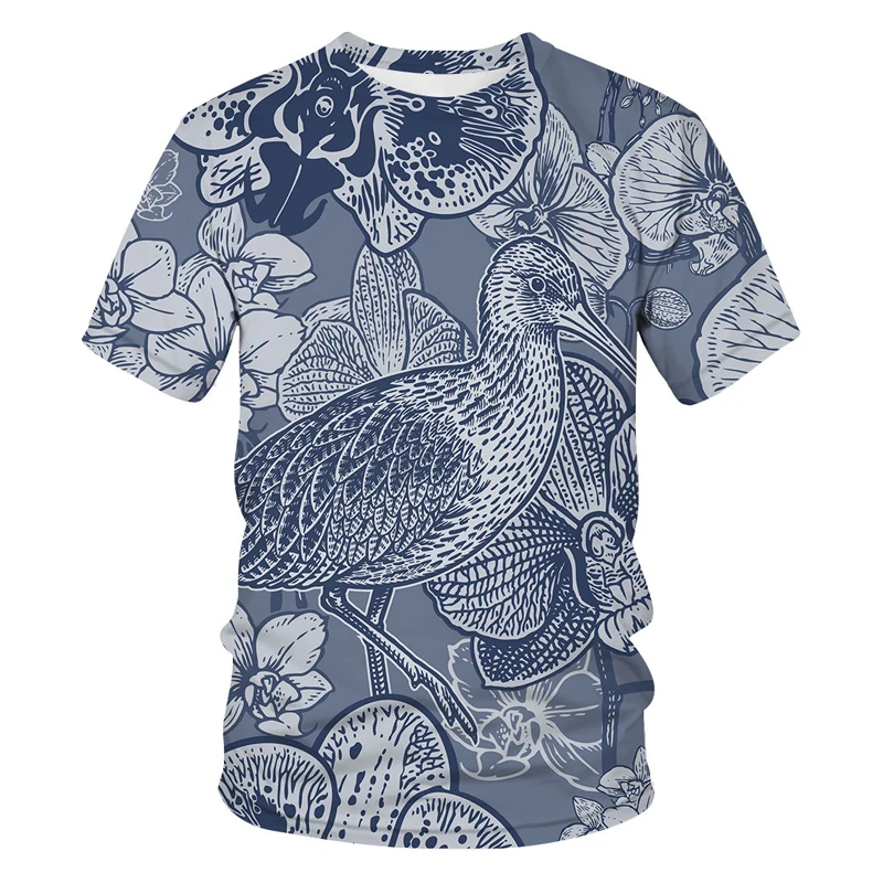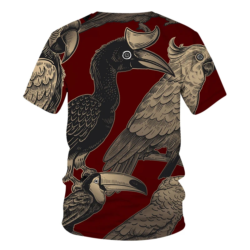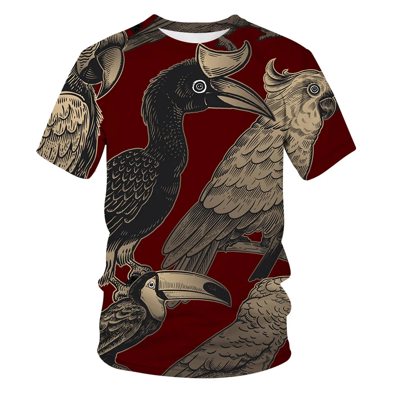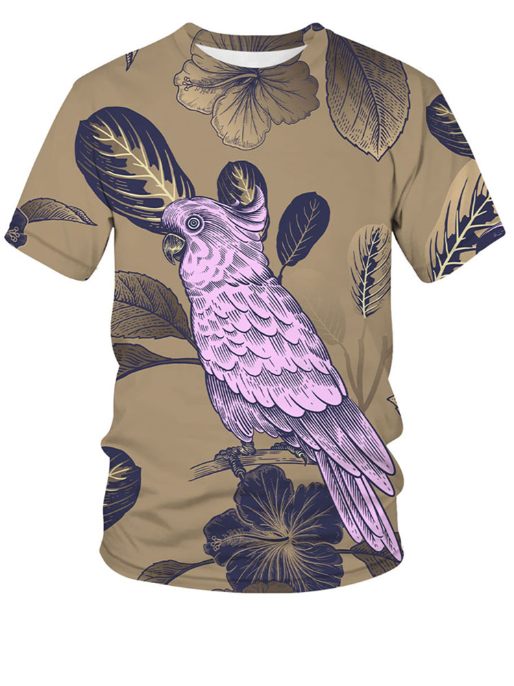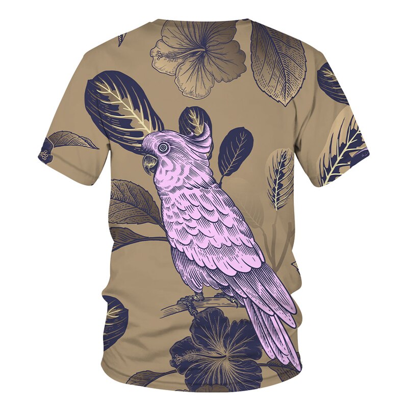 Cartoon Animal Parrot Pattern 3D HD Digital Print Men's Fashion T-shirt O Neck Short Sleeve Street Clothing Summer Loose Shirt