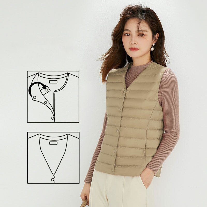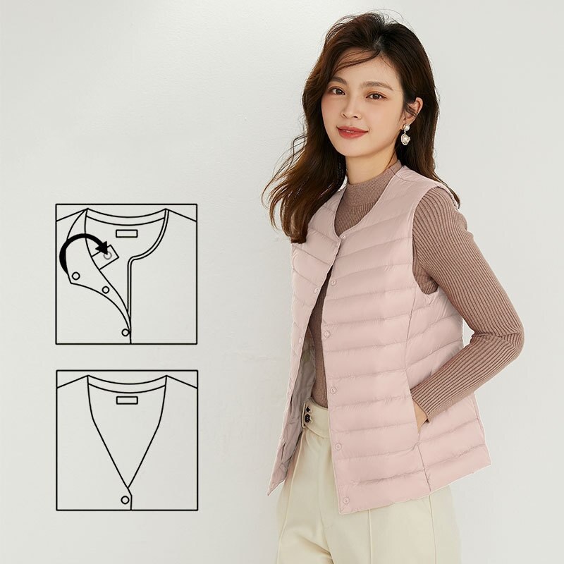 Women Sleeveless Puffer Vest Women's Ultra Light Down Vest Women Two Ways Waistcoat Portable Warm Sleeveless Winter Liner