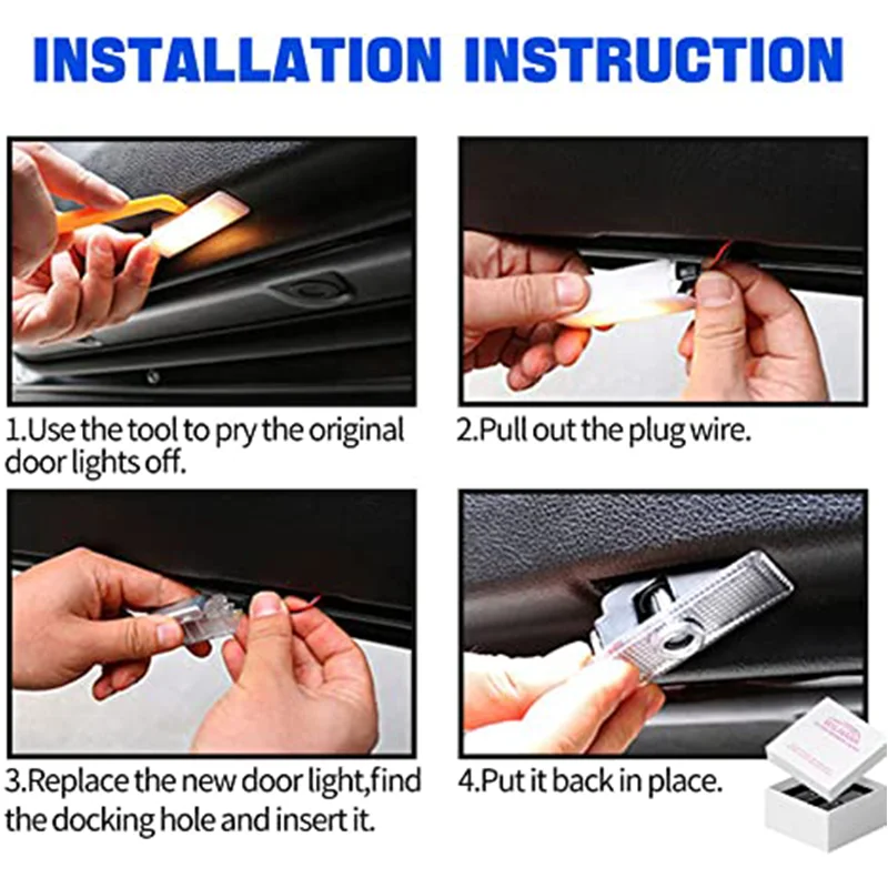 Detailed compatible car models please refer to the description page. Note: Rear door is not applicable if the original rear door light is slanted, no problem at the front door; Make sure your car has original door light at first when you want these logo lights for replacement lights