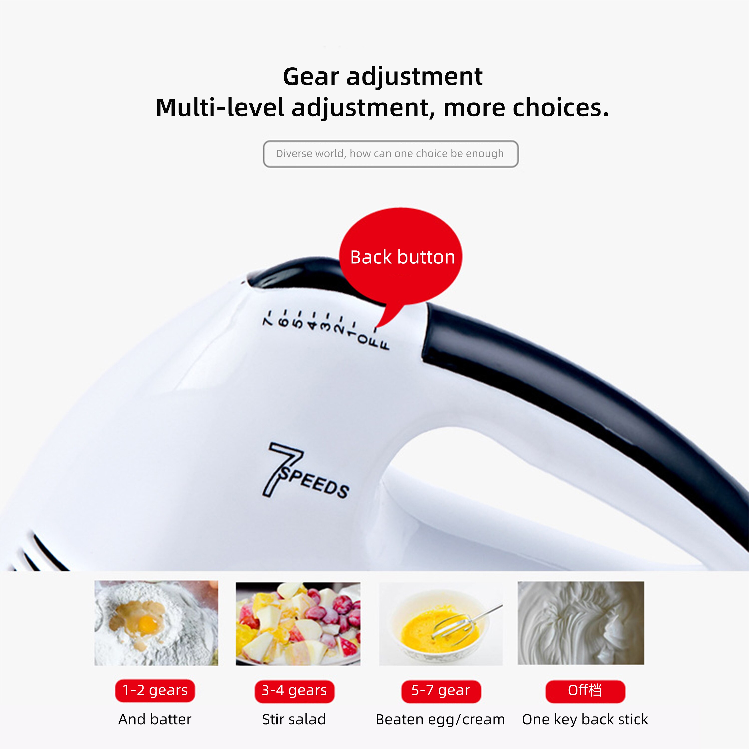 - Features 7 adjustable speeds and turbo button for the highest speed