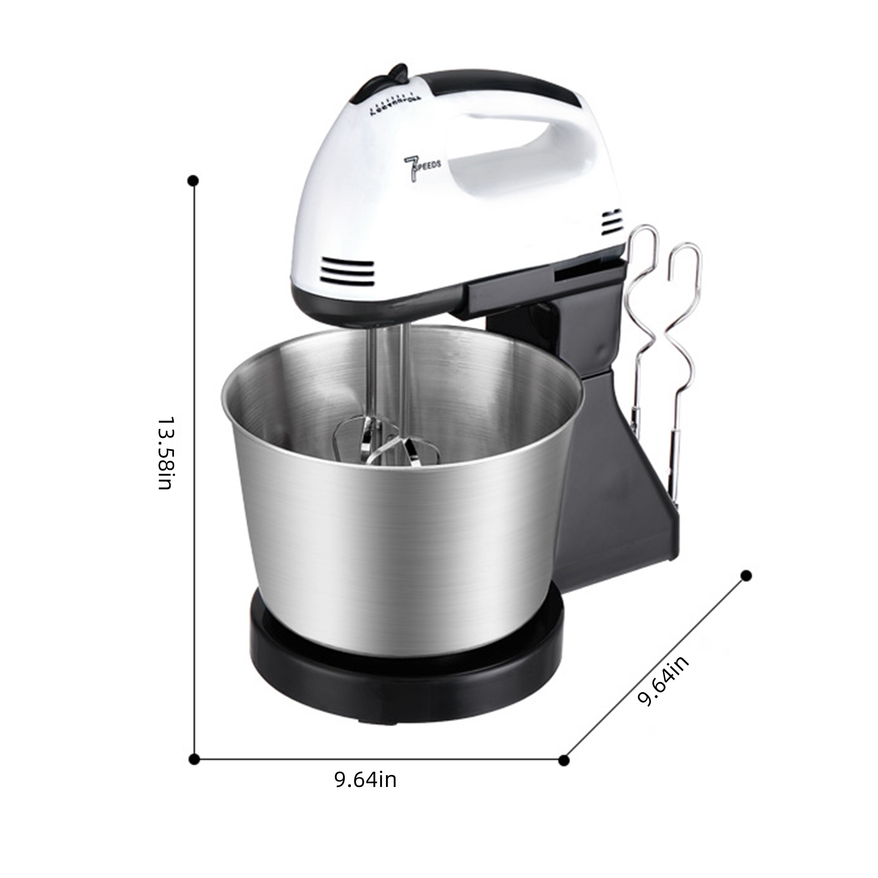 【Easy to Clean】2QT stainless steel bowl food mixer comes with three mixing accessories: whisk, dough hook, mixing beater. All accessories are dishwasher safe.
