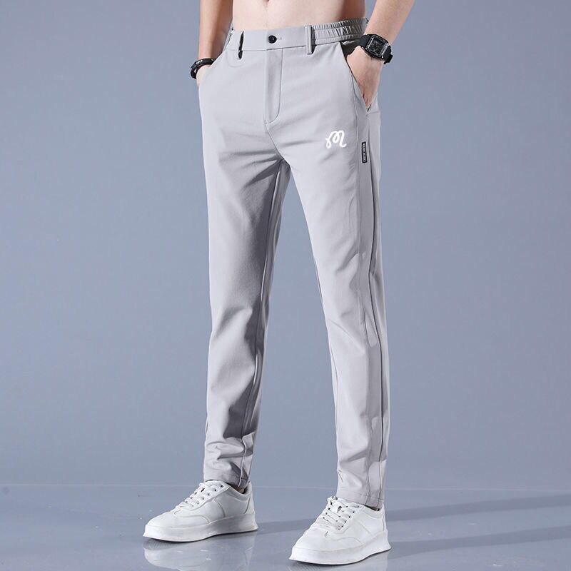 2023 Spring Summer Pants Mens Stretch Korean Casual Slim Fit Elastic Waist Business Classic Trousers Male Black Gray