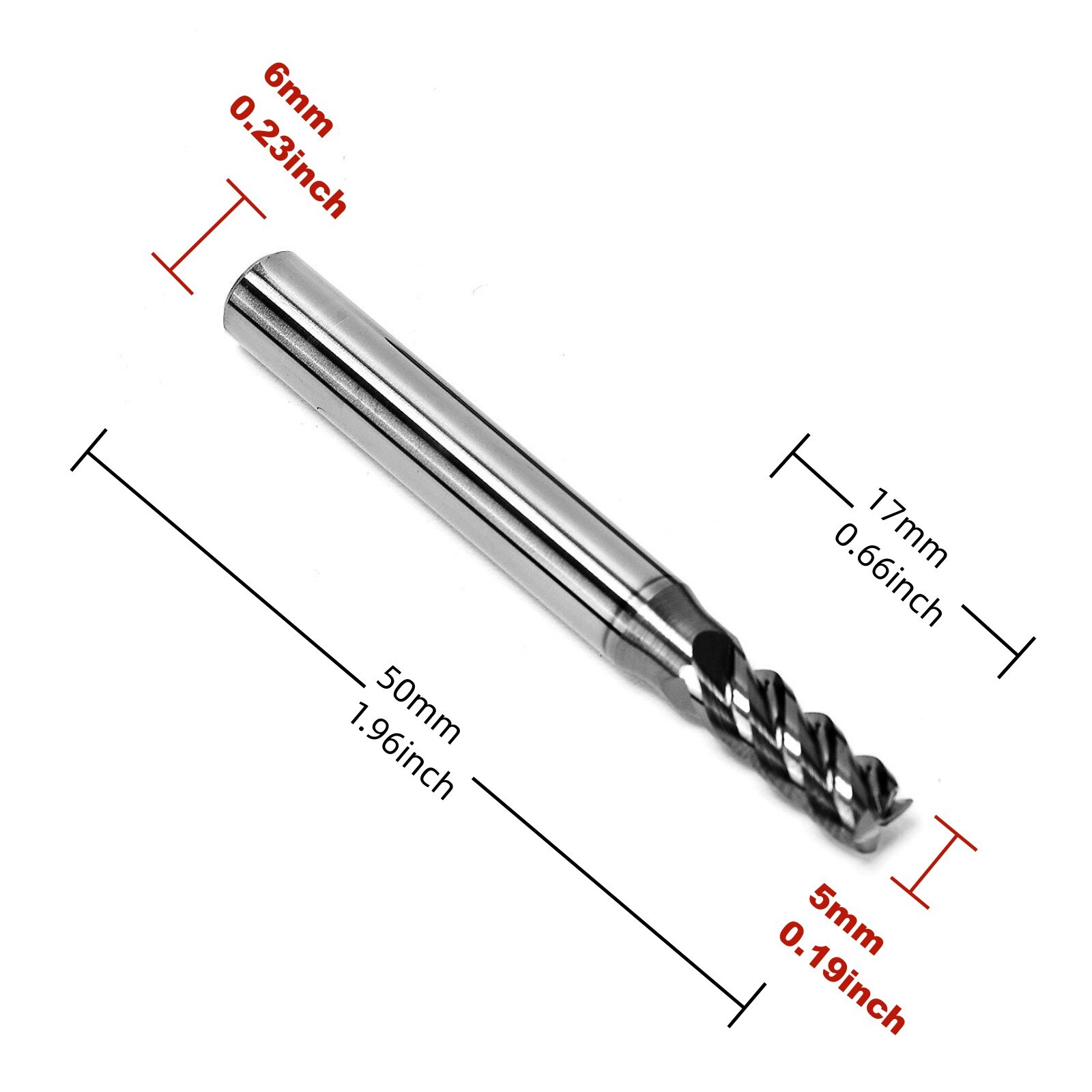 2Pcs Carbide End Mills High Speed Cutter 4 Flute (D 5mm x L 50mm) for Cutting High Hardness 58HRC, CNC Milling Hardened Metals