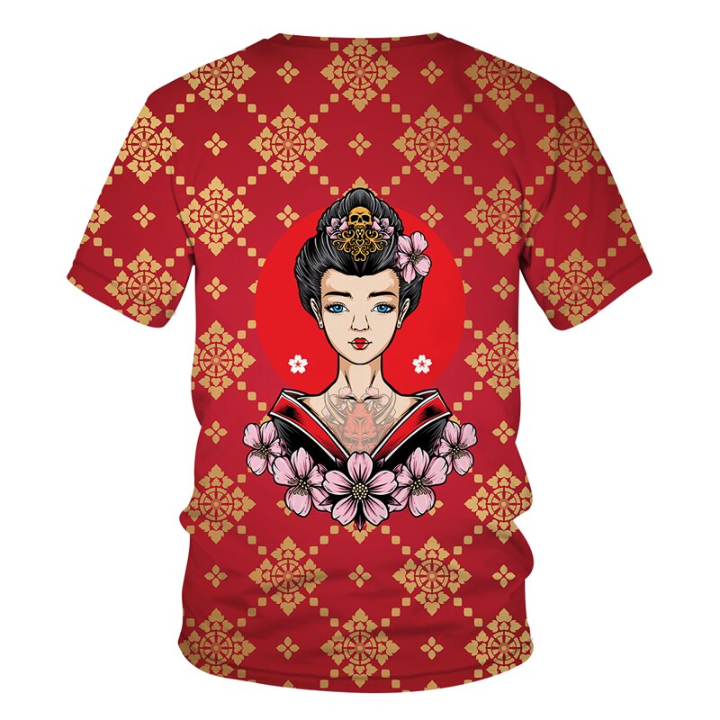 Summer Personality Geisha Pattern 3D Animal Print T-shirt Casual Fashion Hip Hop Harajuku Men's Large Size O Neck Short Sleeves