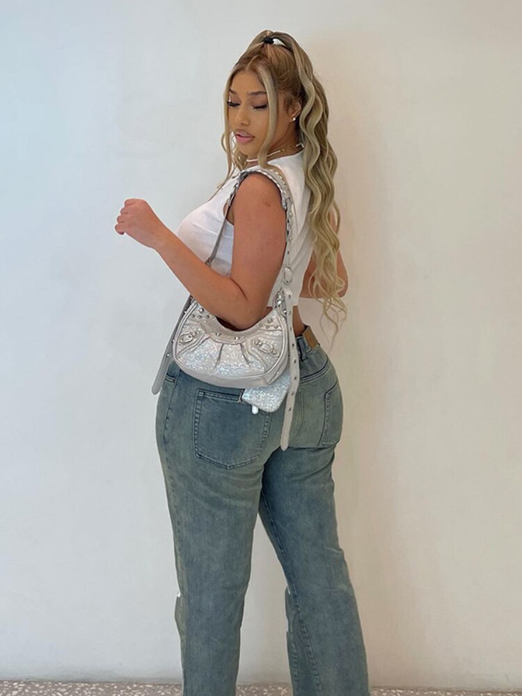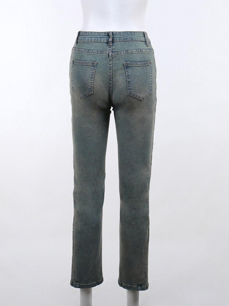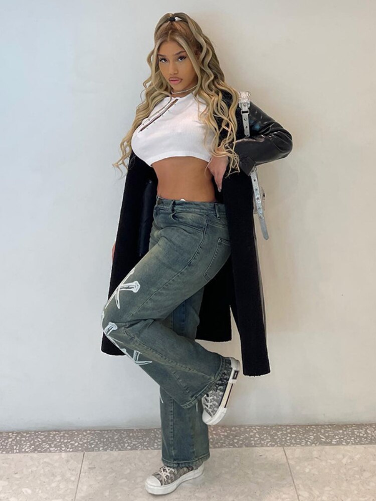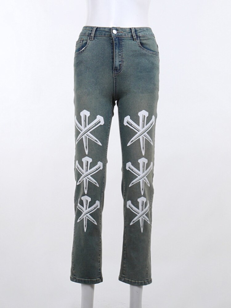 Nail Printed Baggy Pants High Waisted Blue Straight Leg Jeans for Women 2023 Korean Fashion Streetwear y2k Long Denim Trousers