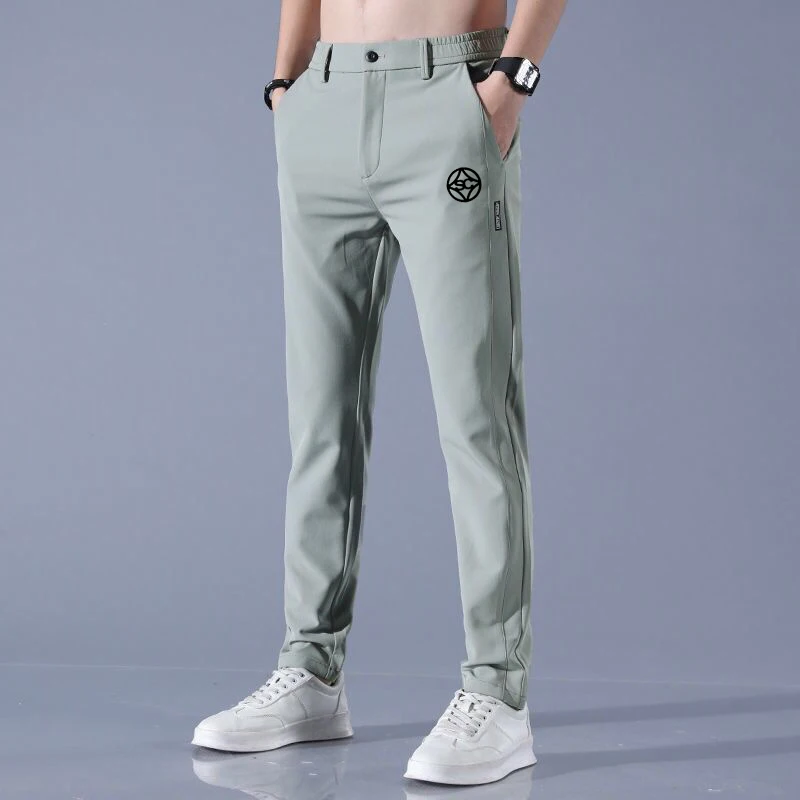 Spring and Summer Harem Pants Men's Cotton Thin Elastic Belt Waist Corset Feet Sky Blue Loose Breathable Sports Overalls Men's