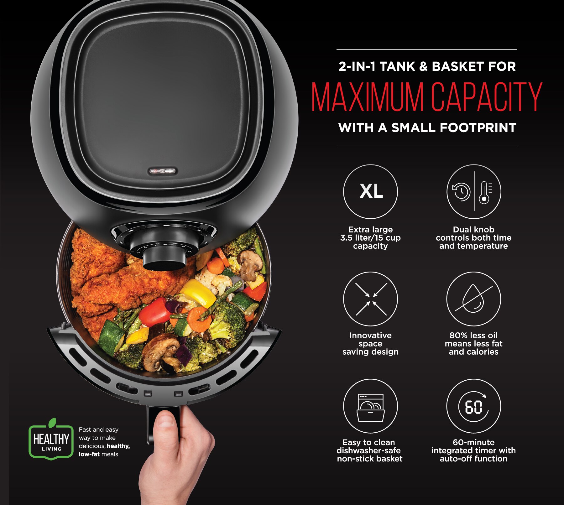 TurboFry Analog Air Fryer with Dual Control, 3.6 Quart, Matte Black