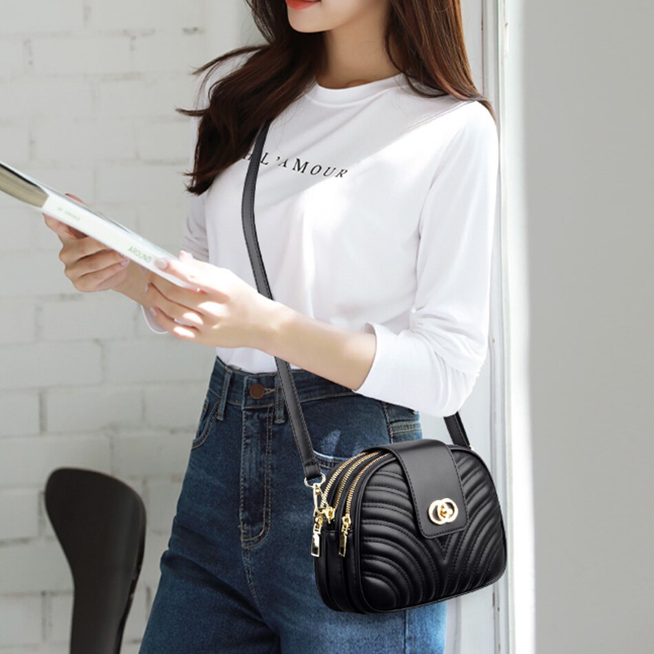 Fashion Women's Bag Solid Color Shoulder Messenger Bag Simple Elegant High-quality Leather Multi Layer Zipper Small Bag Handbag