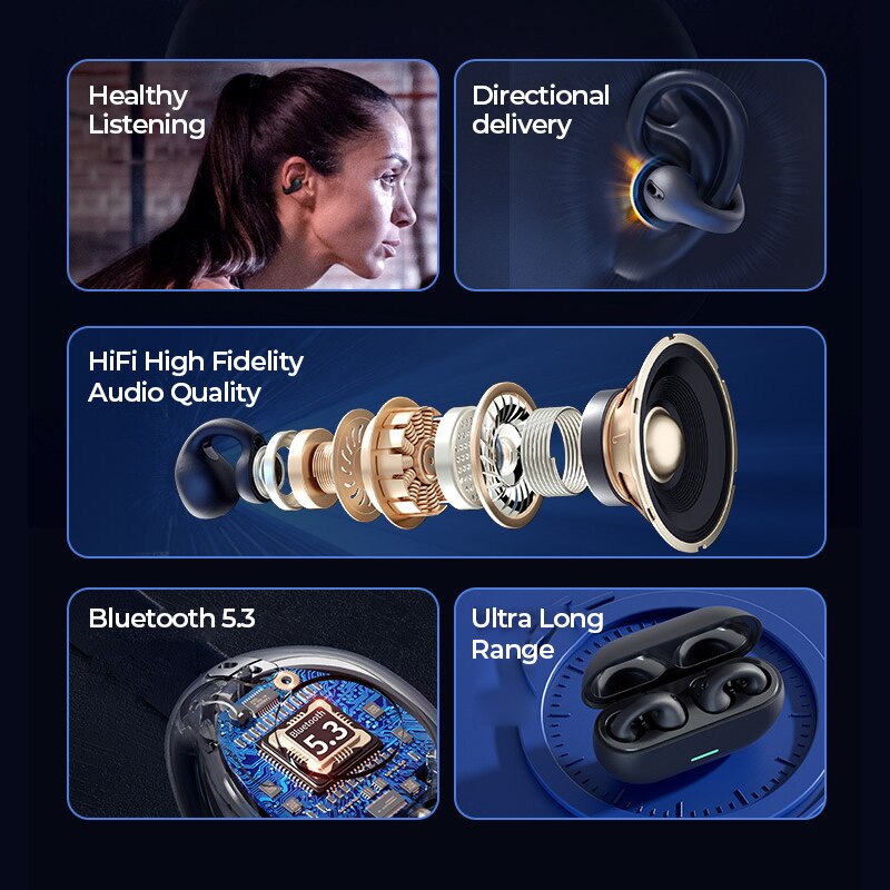 Bone Conduction Bluetooth 5.3 Earphones Earring Wireless Headphones Waterproof Headset TWS Sports Earbuds Ear Hook With Mic