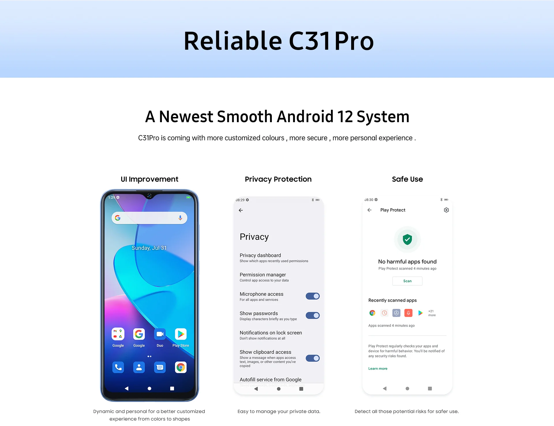 C31 Pro comes with more customized colors,more secure,more personal experience.