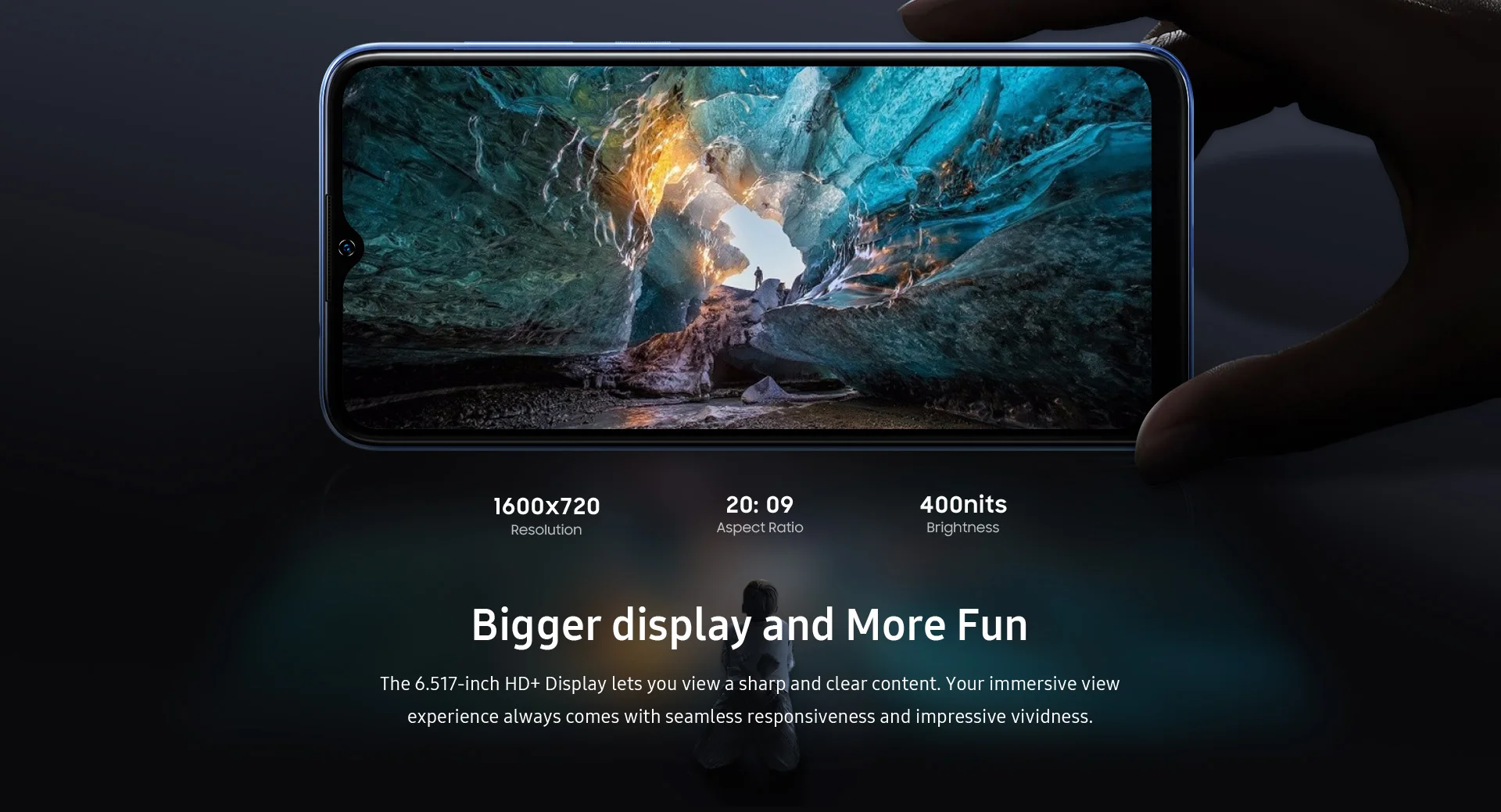 The 6.517-inch HD+ Display lets you view a sharp and clear content. Your immersive view experience always comes with seamless responsiveness and impressive vividness.