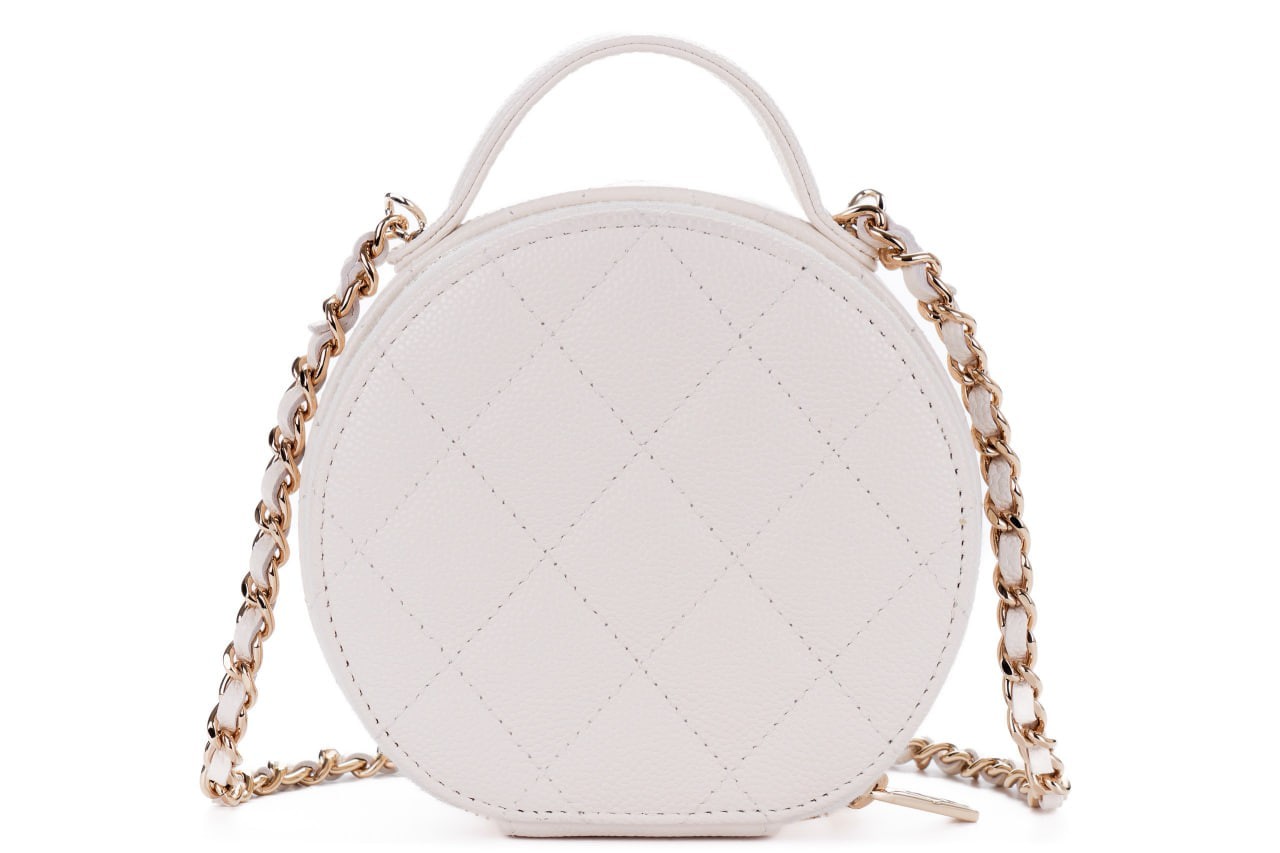 Chanel Matalasse Small Vanity Caviar White Shoulder Bag Gold Hardware Microchipped 2021 / Pre-Loved.