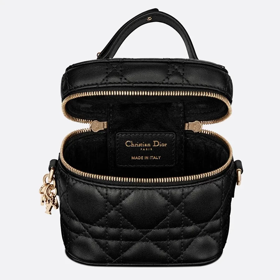 Túi Xách Tay Nữ Dior Vanity Micro Case S0935ONMJ Màu Đen được chế tác bằng da cao cấp với đường khâu Cannage cùng điểm nhấn khóa kéo kim hoàn thiện với tone màu vàng nhạt sang trọng.